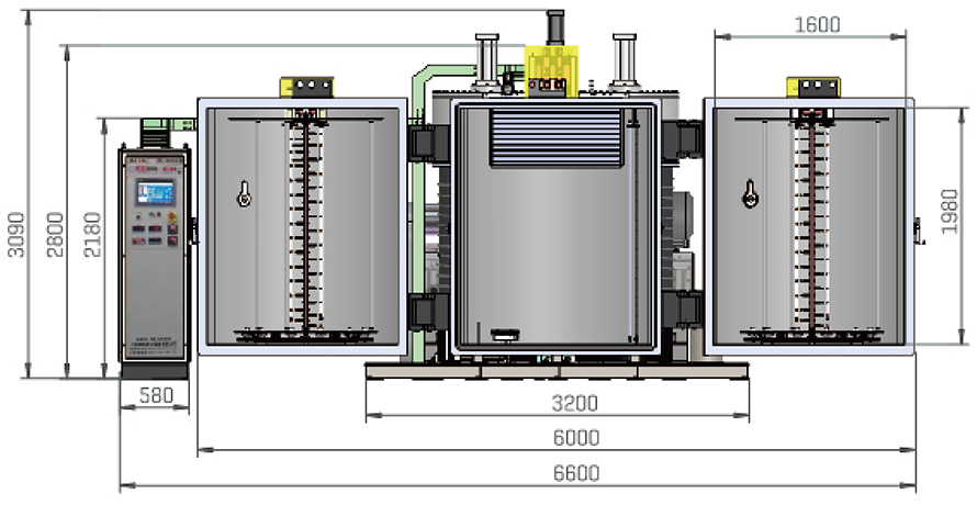 Side view of VLT vacuum VLT-1600B dual-unit coating machine